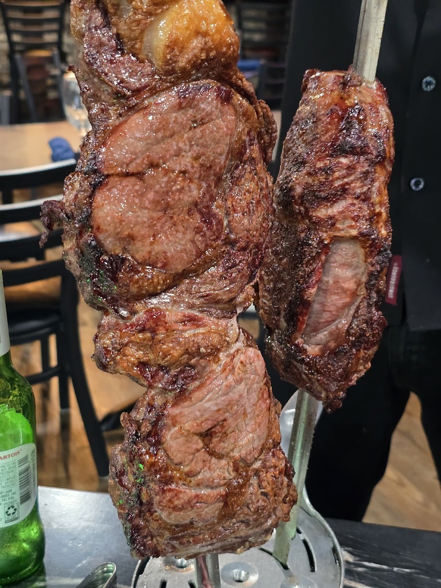 The menu is centered around the classic Brazilian barbecue tradition, where skewers of meat are cooked over open flames and carved tableside. This style, often referred to as rodizio dining, isn’t just about volume; it’s about technique. Each cut is seasoned simply with rock salt, a method supported by culinary research from organizations like the American Culinary Federation, which notes that minimal seasoning allows the natural flavor and texture of high-quality beef to shine. Here, you’ll find favorites like picanha, garlic sirloin, pork loin, and grilled chicken, all rotating steadily through the dining room. During one visit, I timed how often servers returned to the table, and it averaged every few minutes, which kept plates fresh and avoided the common pitfall of overcooked meat.
